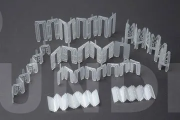 Les cales sont disposées en grappe (6 à 10 selon les modèles). Elles sont reliées par une charnière qui constitue une amorce de prédécoupe.