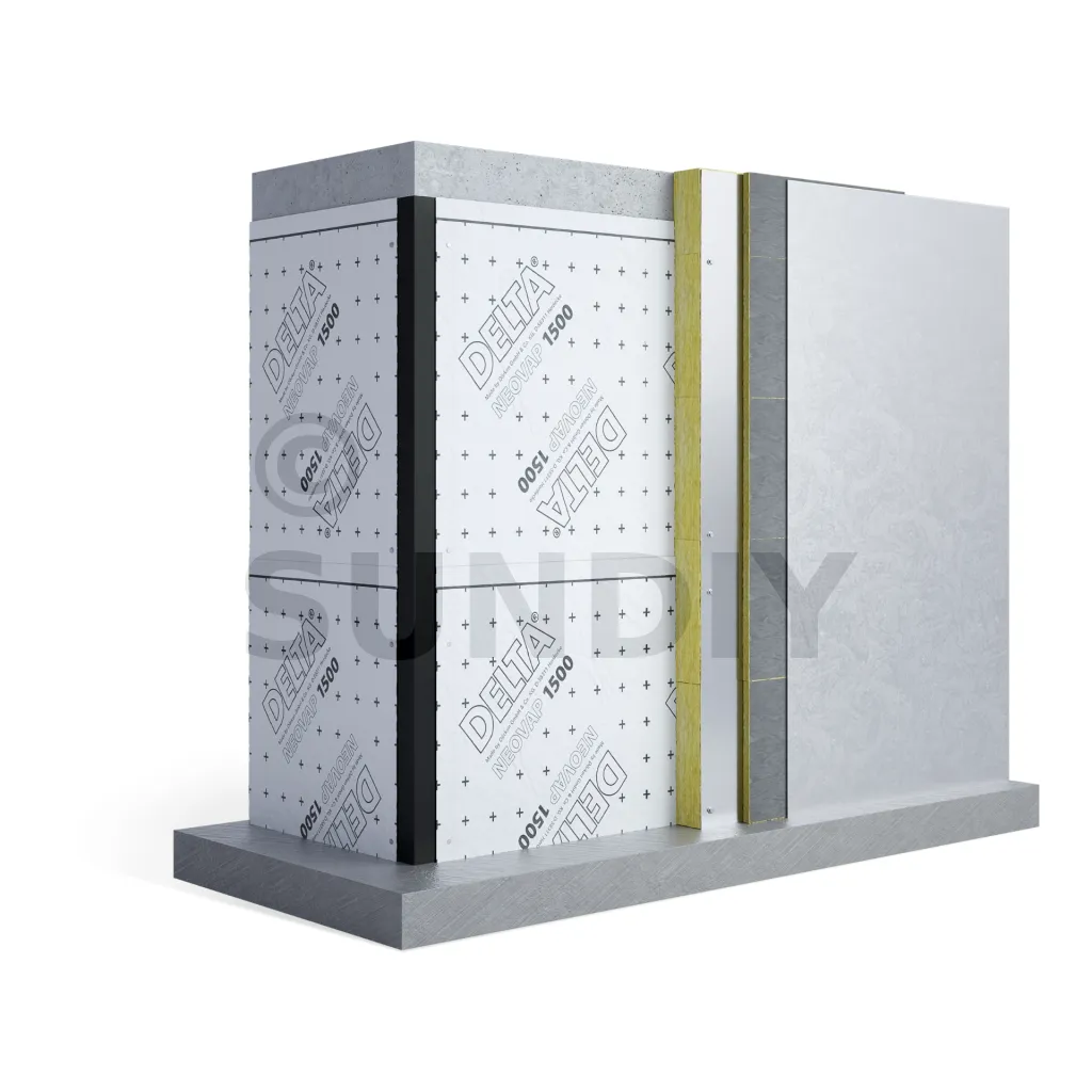 - Façades non ventilées (paroi béton + pare-vapeur + isolant thermique en laine minérale + revêtements de façade isolants).