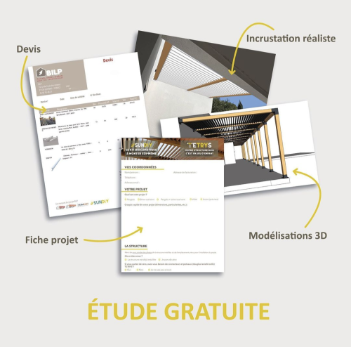 Pour toute commande de produit Sundiy, je réalise votre étude de plans GRATUITEMENT. Pour cela, contactez-moi, et nous discuterons de votre projet ensemble (voir page "contact" en bas de cette page).