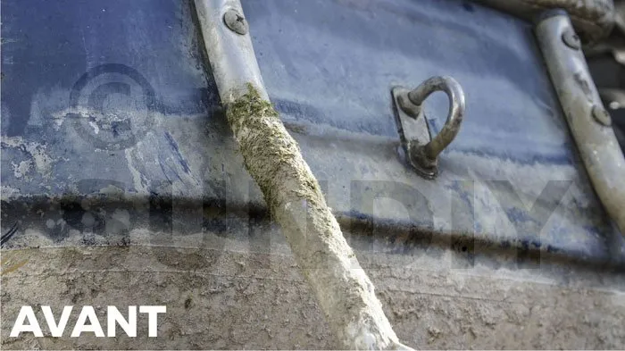 - Élimine le jaunissement, les traces vertes, noires et de rouille. Ravive et blanchit le gelcoat.
