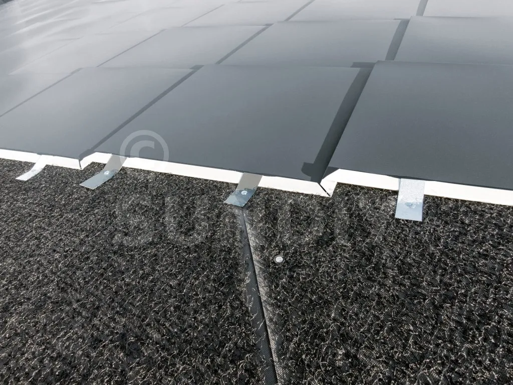 - Toiture froide : pose sur support continu ventilé en sous-face,