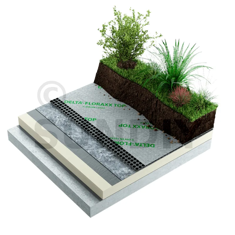 - Le DELTA®-FLORAXX TOP est une solution de drainage pour toitures végétalisées intensives, semi-intensives et extensives. Équipé d’alvéoles de 20 mm et d’un géotextile intégré, il assure une évacuation efficace de l’eau sur tous les types de toitures plates, isolées, non isolées ou inversées.