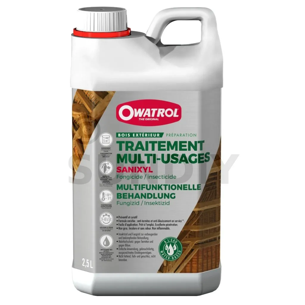 Produit réversible : s’il vient à geler, il suffira d’agiter SANIXYL pour retrouver toute son efficacité. - RendementPréventif : 5 m²/L ; Curatif : 3 m²/L.