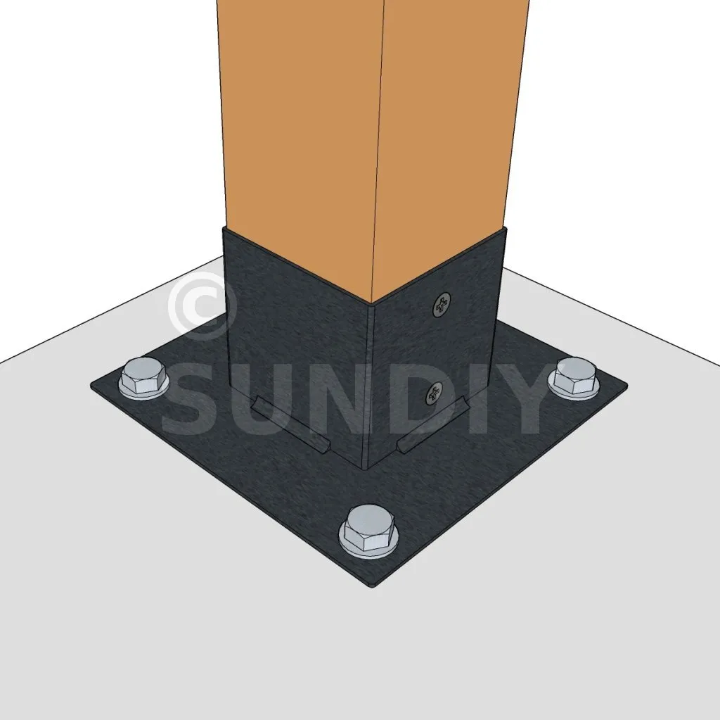 Il permet la fixation des poteaux sur une dalle ou un plot en béton.