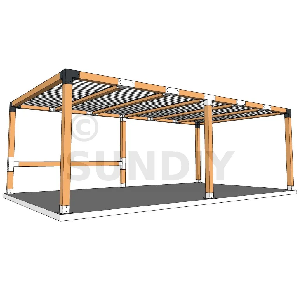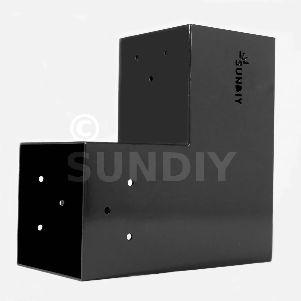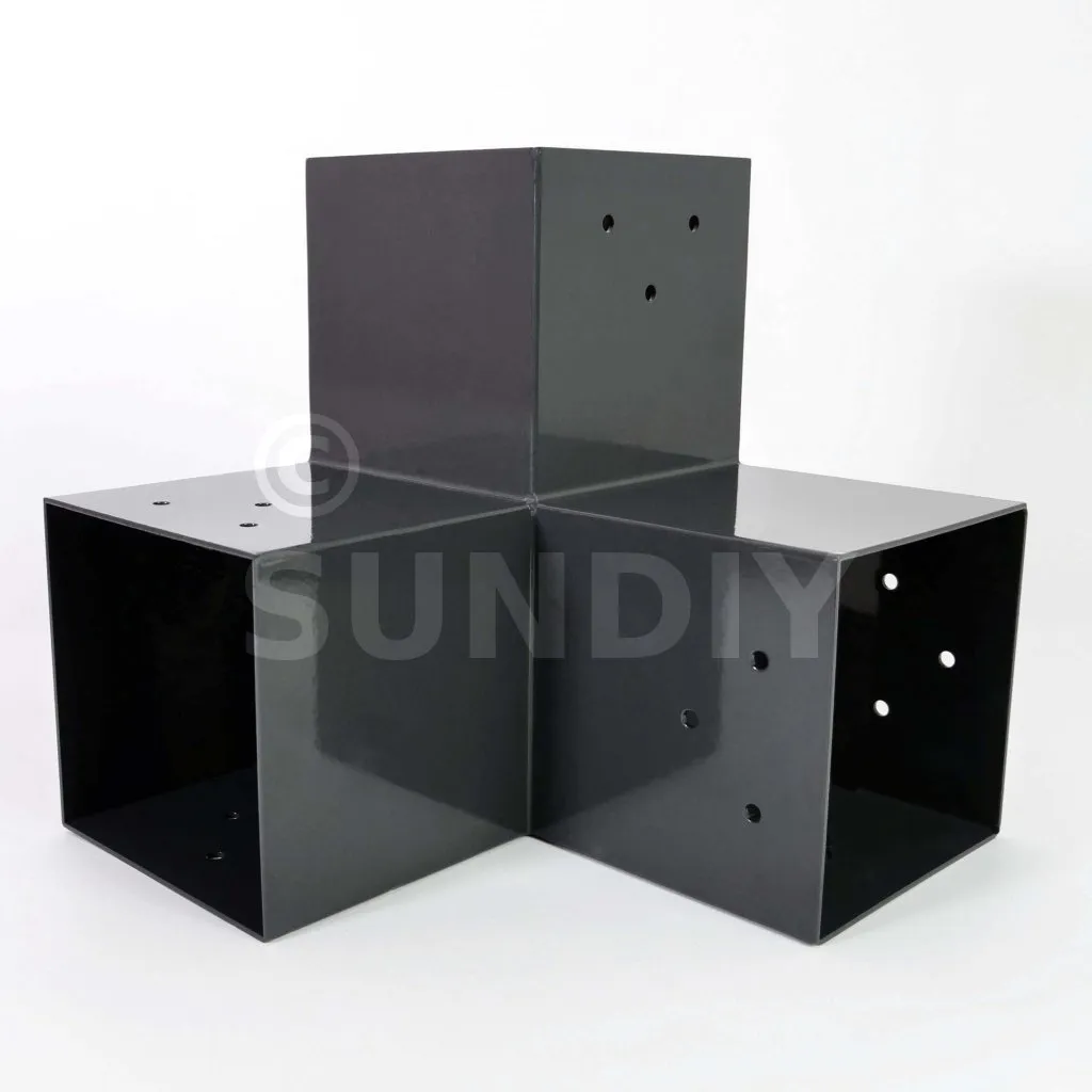 Il est utilisé dans un angle extérieur. Ce connecteur va permettre de raccorder une grosse poutre 120x120mm perpendiculairement à une poutre 120x120mm, le tout étant supporté par un poteau vertical 120x120mm.
