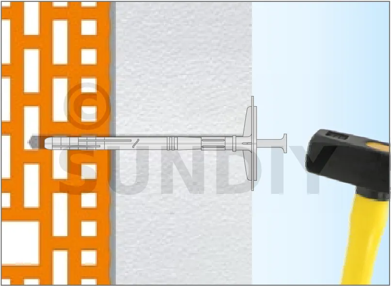 Cheville d’isolation à frapper avec clou en plastique, avec plaque de fixation coulissante - Réf. FIXPLUG08210(100)