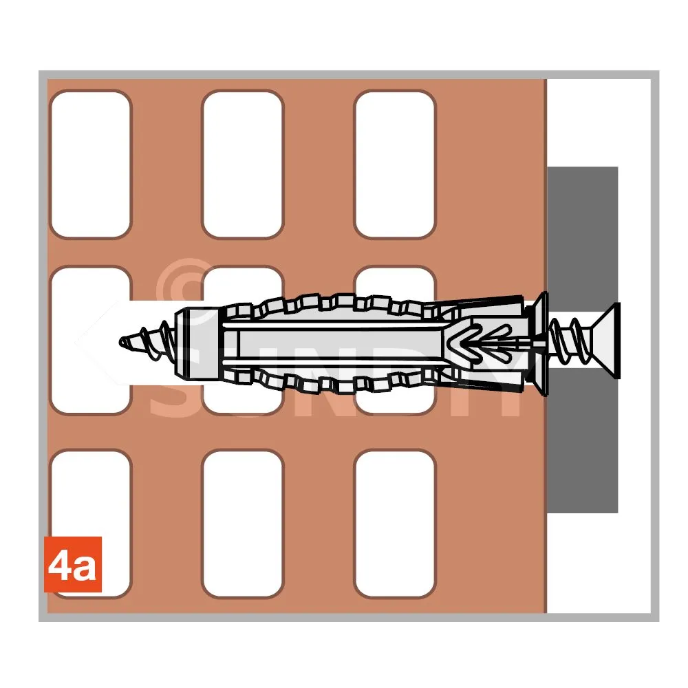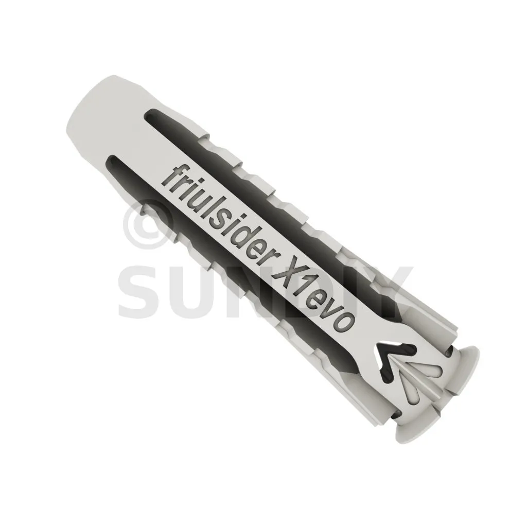 La cheville nylon universelle X1 evo, permet une fixation optimale d’éléments sur tous types de supports plein ou creux, notamment sur plaque de plâtre. Avec tous types de vis: vis filetage bois, vis filetage pas métrique. Avec un maintien large et stable grâce au 4 segments formant une rosace en arrière face du support lors de la pose.