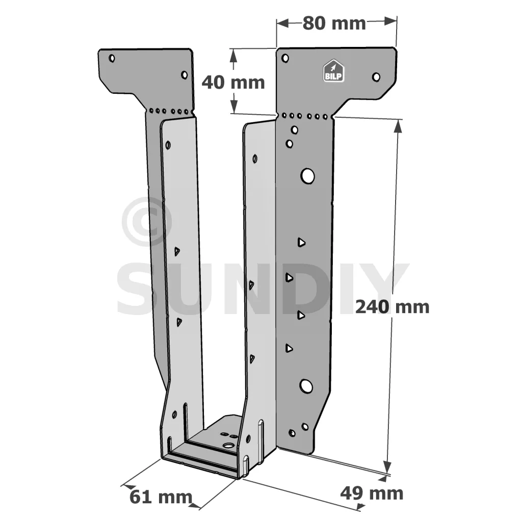 - Étrier fourni avec ses brides supérieures droites, pliables sur chantier afin de s’adapter à toutes les hauteurs de solives,