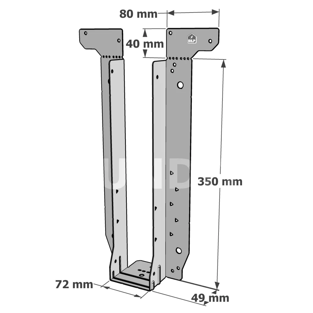 - Étrier fourni avec ses brides supérieures droites, pliables sur chantier afin de s’adapter à toutes les hauteurs de solives,