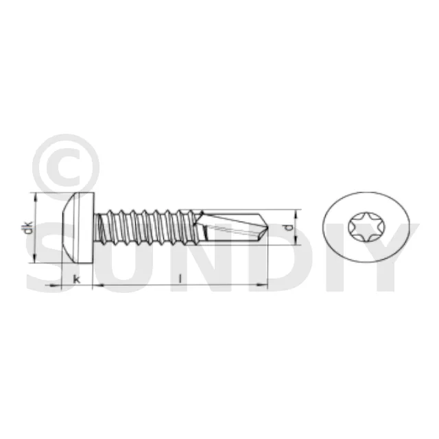 à six lobes internes, avec filetage de vis à tôle
