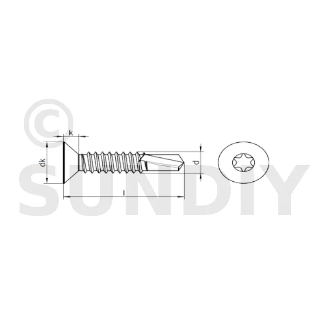 six lobes internes, avec filetage de vis à tôle
