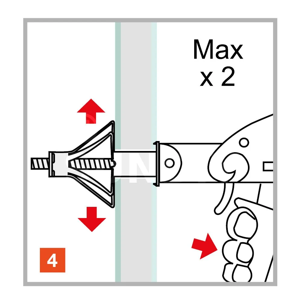 La cheville métallique à expansion TMC avec vis pas métrique prémontée, permet la fixation d’éléments sur plaque de plâtre ou cloison sèche, ou tout support creux dont la cavité correspond aux dimensions de la cheville.