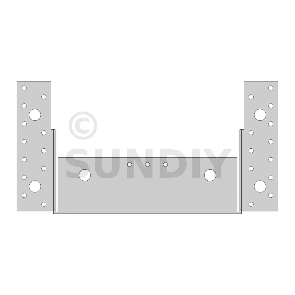 - Perçages sur portéFlancs : 6Ø5 ; Fond : 12Ø5