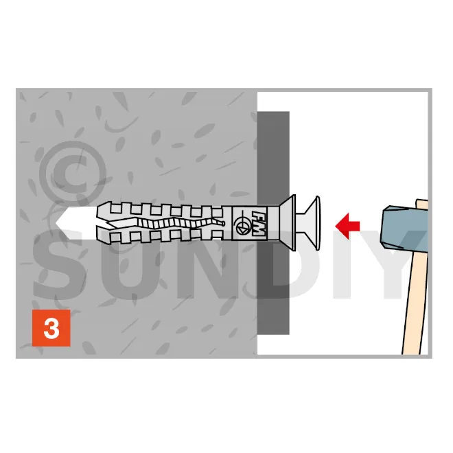 La cheville à frapper à colerette fraisée TSS convient pour la fixation rapide d’éléments légers sur supports divers.