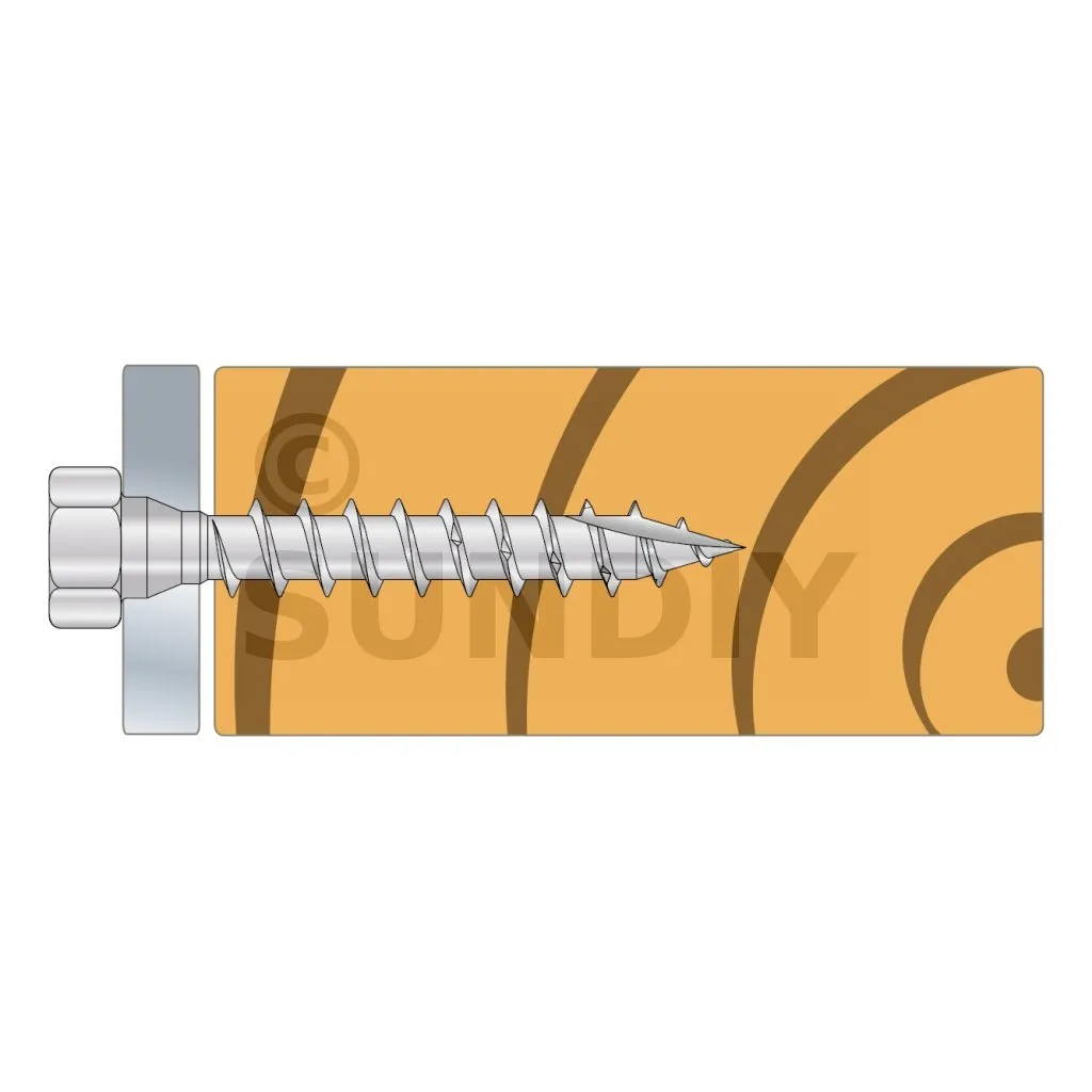 - Tête hexagonale : parfait maintien de la plaque acier sur bois grâce à sa tête large