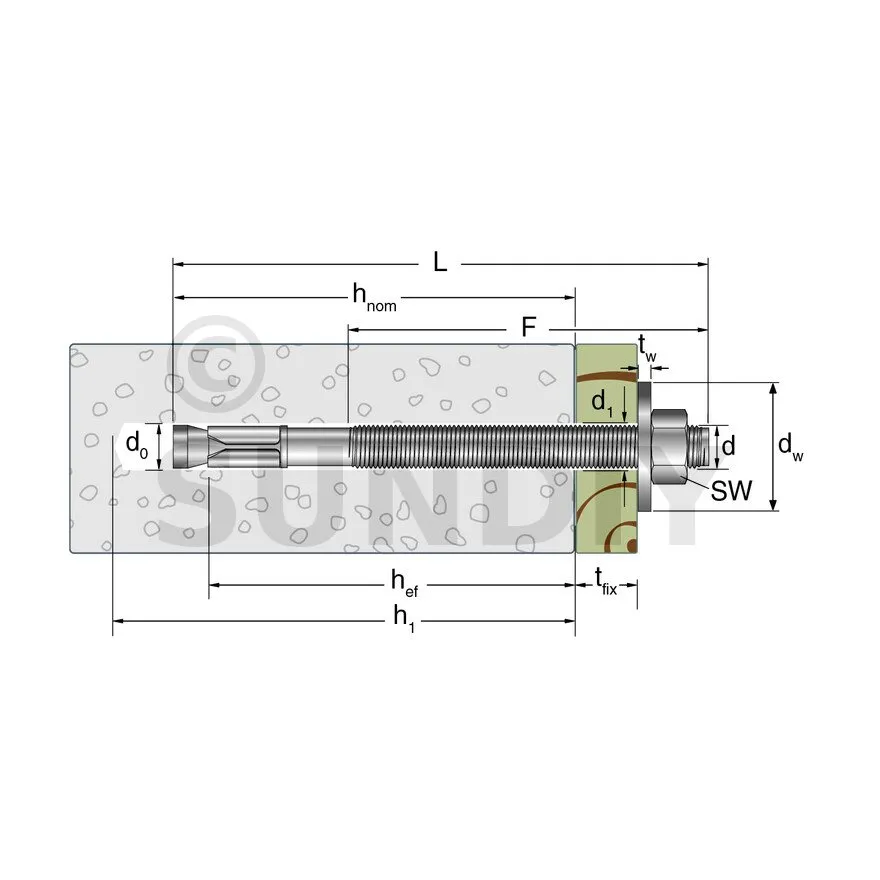 - Pose simple et rapide : écrou et rondelle prémontés et profondeur d’ancrage réduit; Ø du filetage = Ø du perçage,