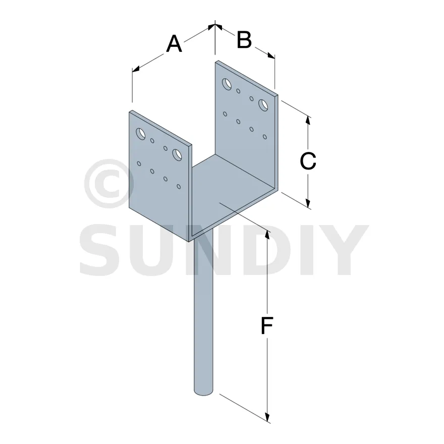 | Pied de poteau PPD120/90G | Largeur 120 mm ; 12 perçages pour vis Ø5 mm ; stabilité accrue pour poteaux de grande section. |