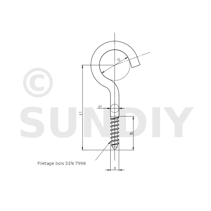 Piton ouvert à filetage bois - Réf. 07064507002