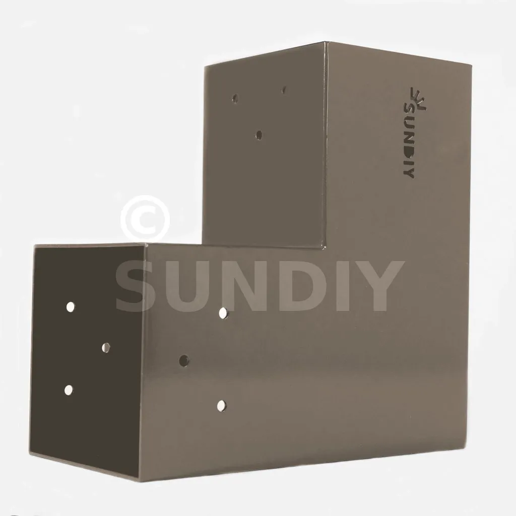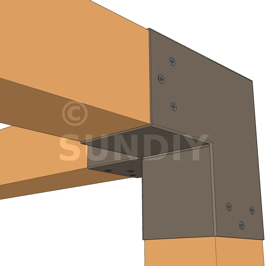 Il est utilisé dans un angle extérieur. Ce connecteur va permettre de raccorder une poutre 90x90mm perpendiculairement à une poutre 90x90mm, le tout étant supporté par un poteau vertical 90x90mm.