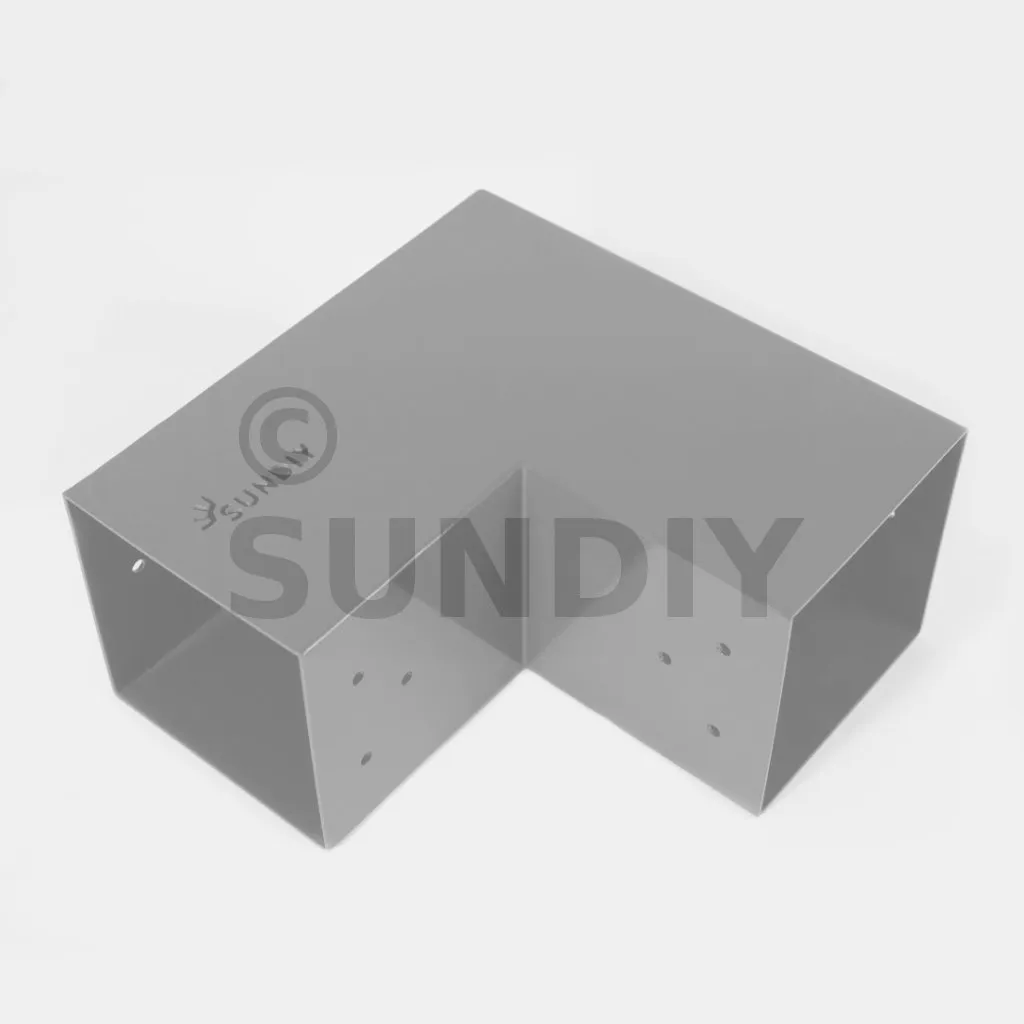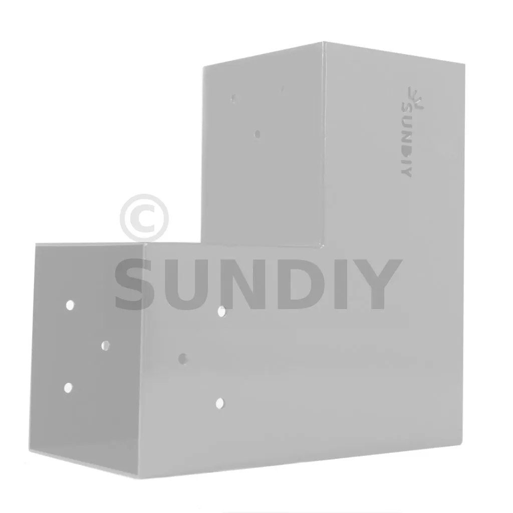 Il est utilisé dans un angle extérieur. Ce connecteur va permettre de raccorder une grosse poutre 120x120mm perpendiculairement à une autre poutre ou à un poteau vertical 120x120mm.