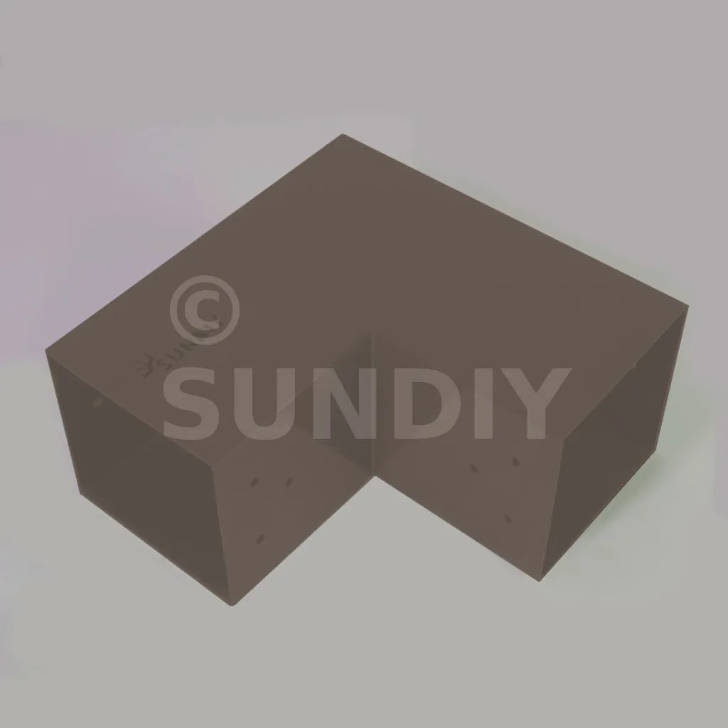 Il est utilisé dans un angle extérieur. Ce connecteur va permettre de raccorder une grosse poutre 120x120mm perpendiculairement à une autre poutre ou à un poteau vertical 120x120mm.