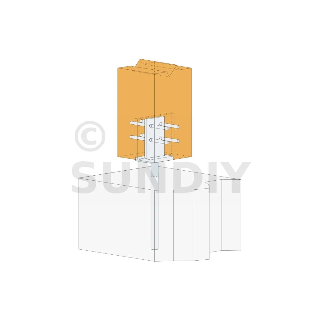 | Pied de poteau en âme à sceller - Réf. PIG | Reprise de charge en soulèvement ; hauteur réglable grâce à la tige à sceller ; galvanisation à chaud anti‑corrosion ; âme très discrète |