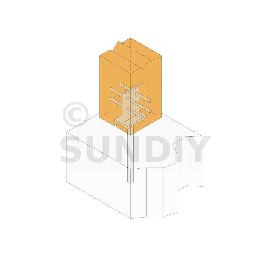 4. Le pied de poteau peut aussi être noyé dans le béton au moment où ce-dernier est coulé.