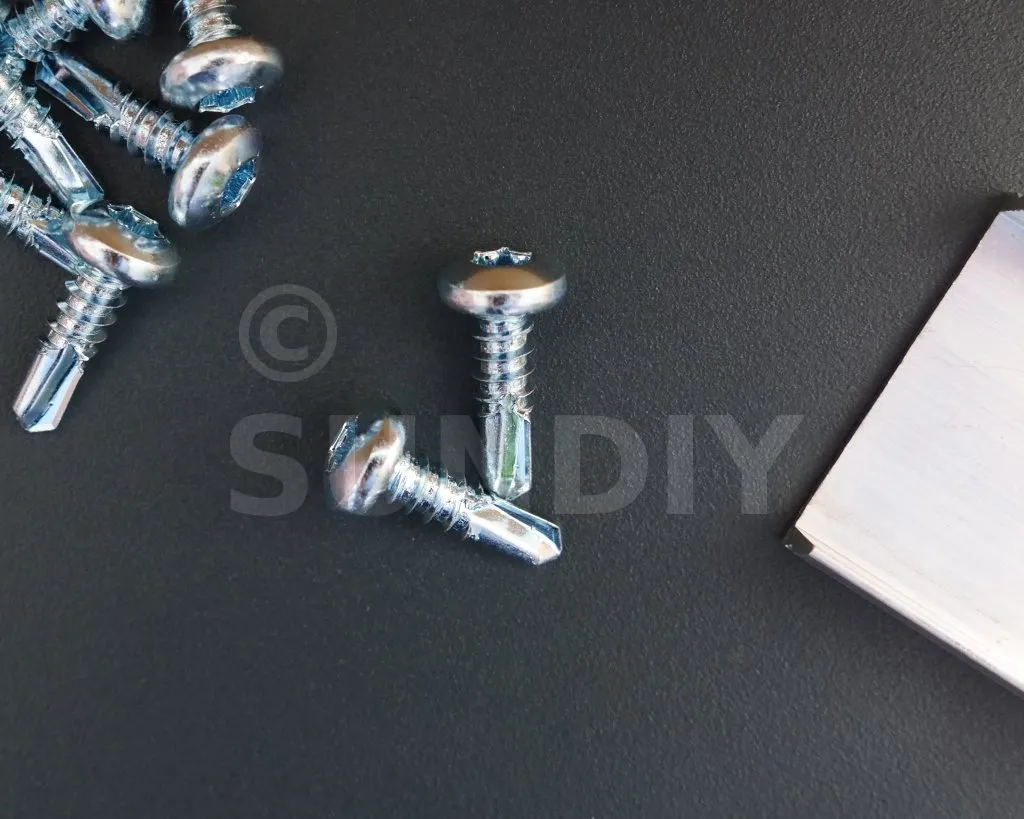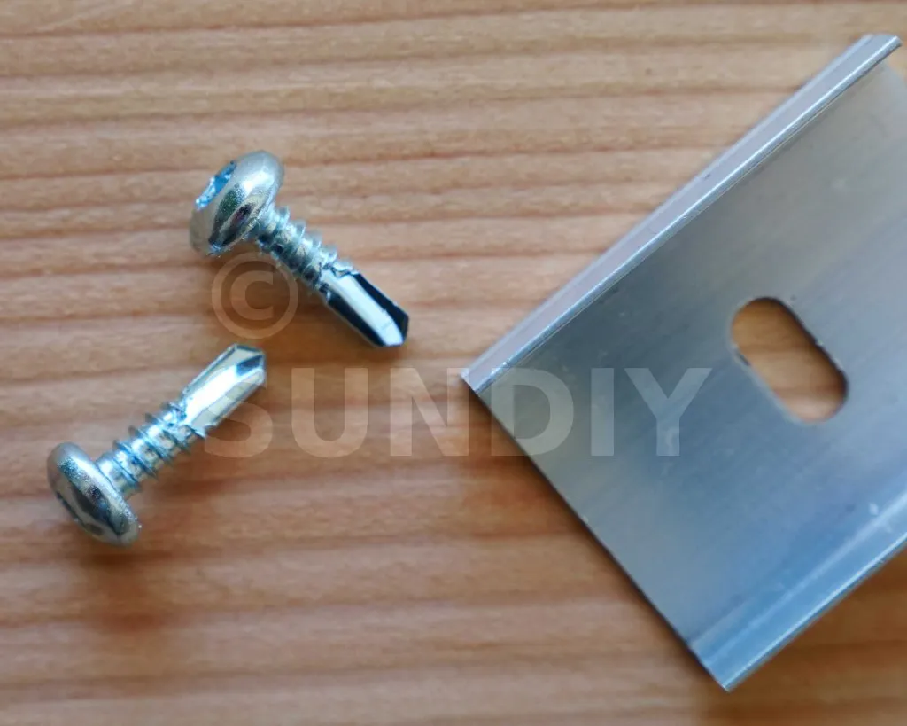 Les mécanismes du système SUNDIY sont solidement fixés à la structure (que ce soit du bois, de l’aluminium, du béton, etc.) à l’aide des clips* de fixation qui doivent être vissés au préalable. Les vis proposées ici sont spécialement conçues pour garantir une fixation efficace dans l’acier.