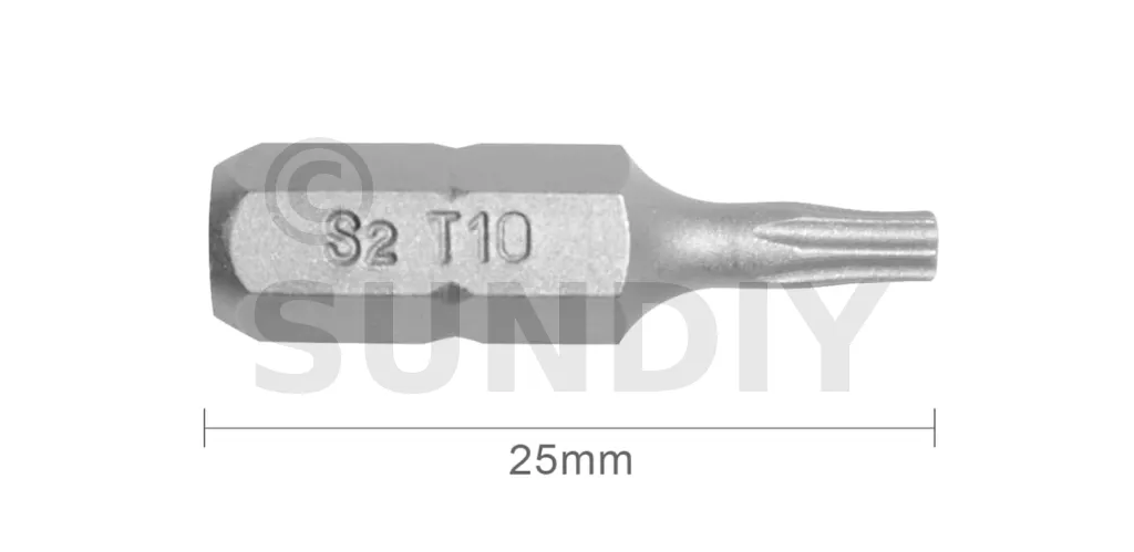 Embout T10 25mm (Qualité Professionnelle, Acier S2) - lot de 5 embouts - Réf. EmboutT10_5