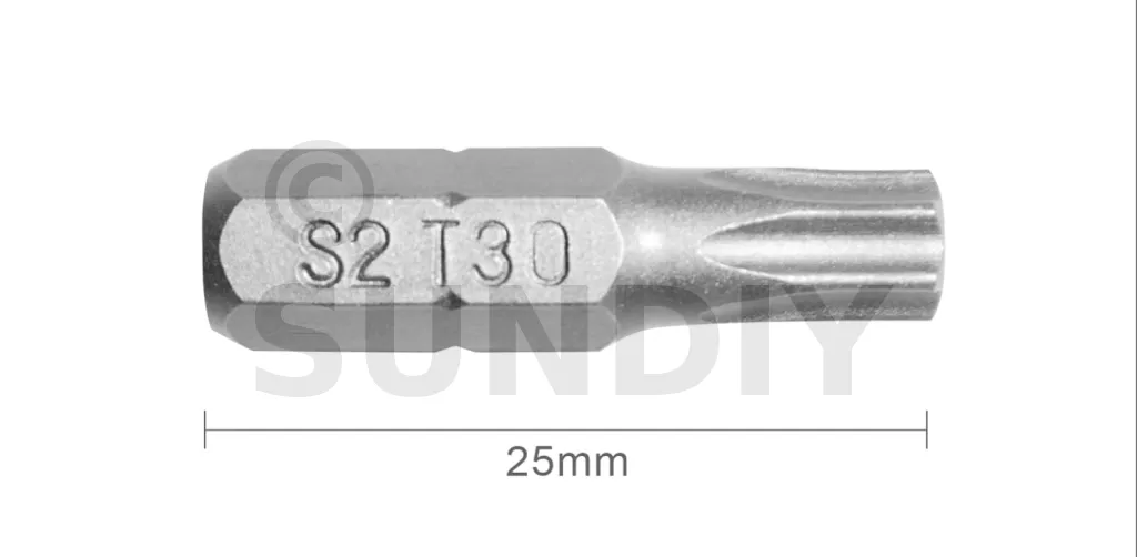 Embout T30 25mm (Qualité Professionnelle, Acier S2) - lot de 1 embout - Réf. EmboutT30_1