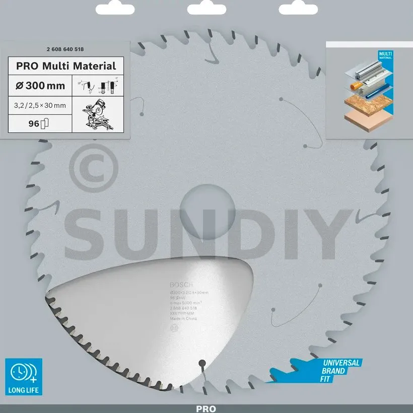 Lame de scie circulaire PRO 300 x 30 x 3.2 mm - 96 dents - Multi matériaux - Réf. 2608640518