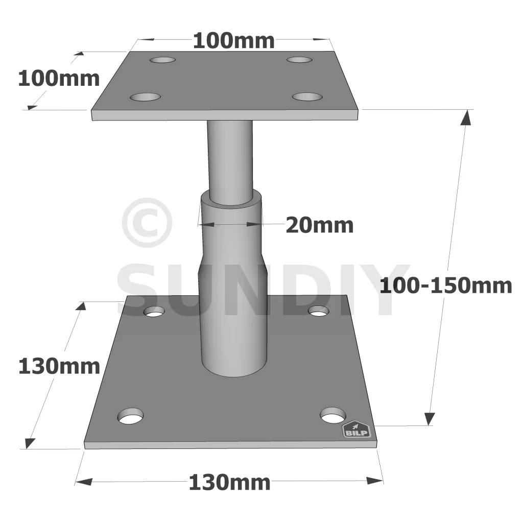 Pieds de poteau réglables en HAUTEUR - Réf. APB100/150