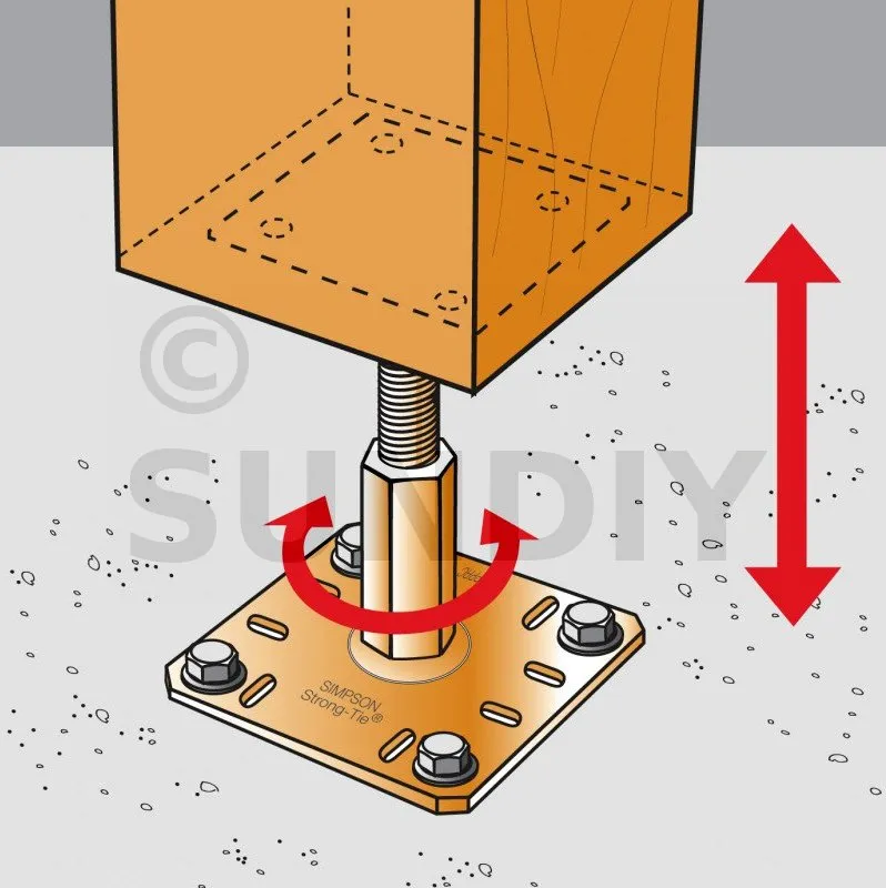 Les pieds de poteau PPRC sont réglables en hauteur. Simples et rapides à installer, ils peuvent être réglés sur le chantier.