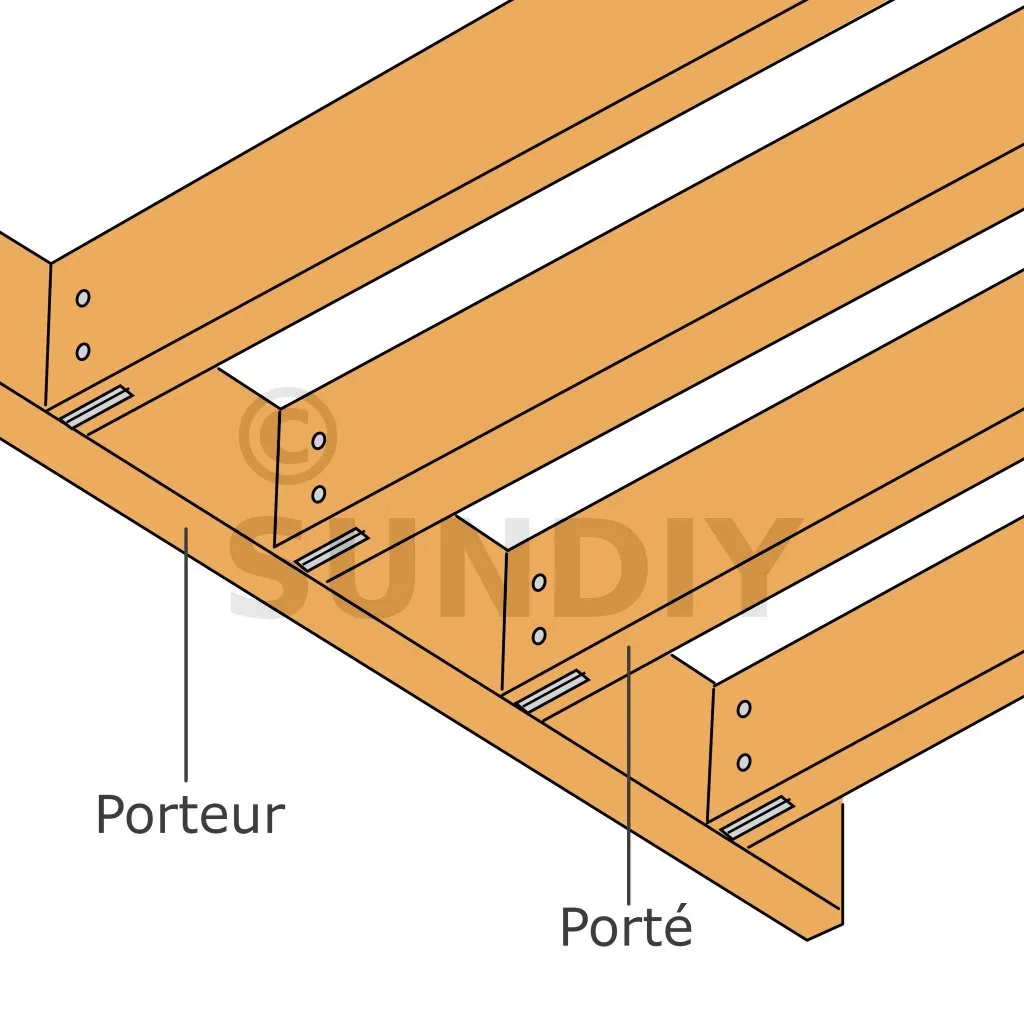 Sur porteur bois (exemple : La poutre sur laquelle les étriers seront fixés) :