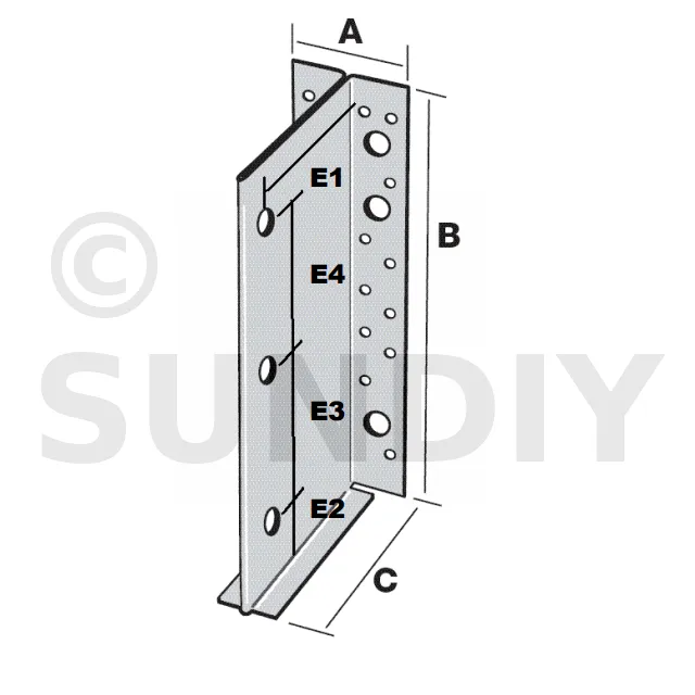 | Largeur | Hauteur | Largeur poteau | Hauteur (A) | Profondeur (B) | largeur (C) | largeur (D) | Epaisseur (t1) | Epaisseur (t2) | Ø13 | Ø5 | Ø13 | ||
