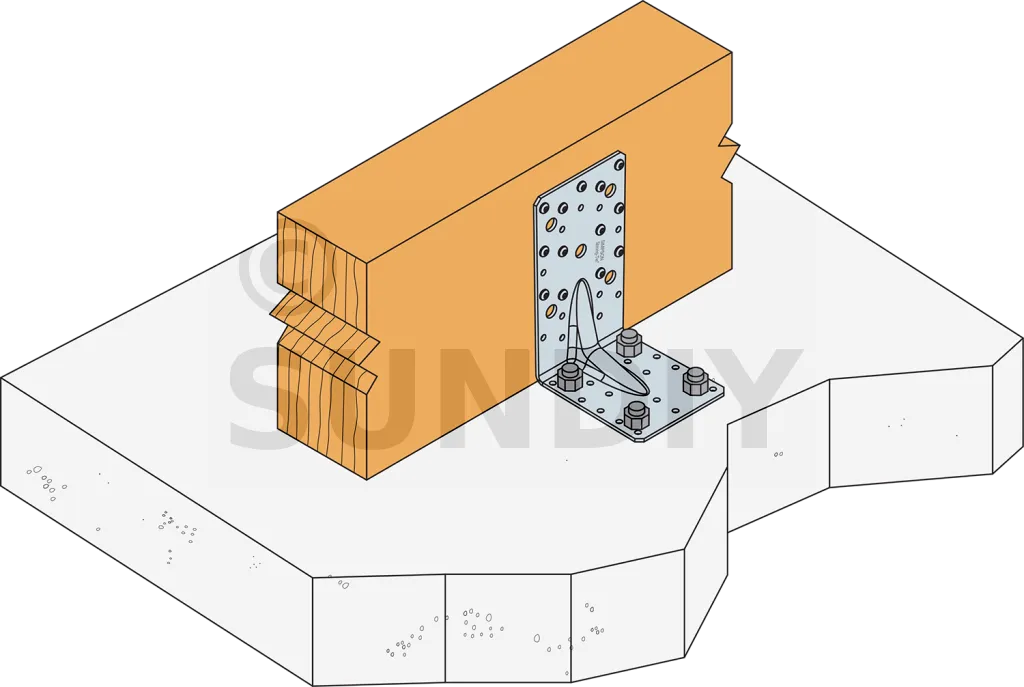 Le niveau de résistance design du boulon R#,d est déterminé par (coefficient boulon x charge design du connector F#,d) pour la direction d’effort et fixations correspondantes. Referez vous à la gamme d’ancrages Simpson Strong-Tie pour les ancrages adaptés. Les solutions classiques sont BOAXII, SET-XP, WA, AT-HP, en fonction du type de béton, espacement et distances aux bords.
