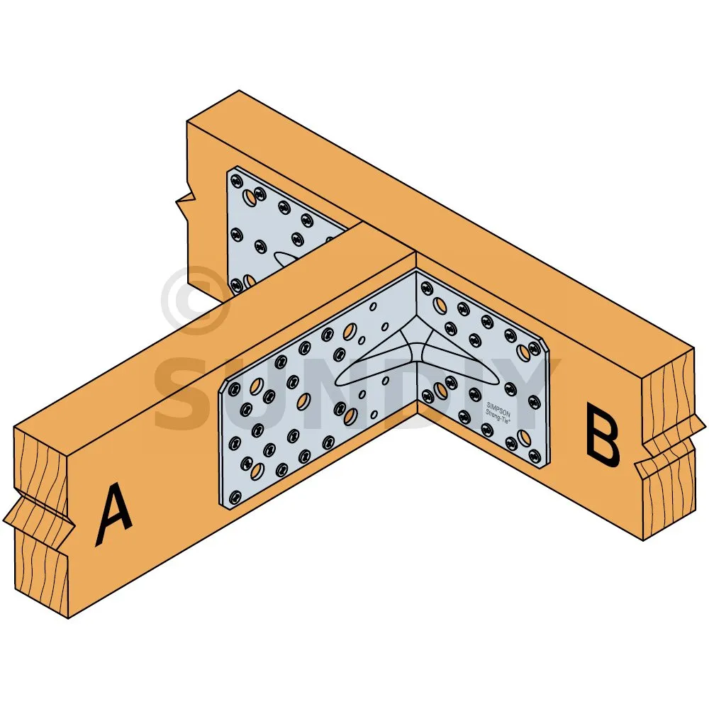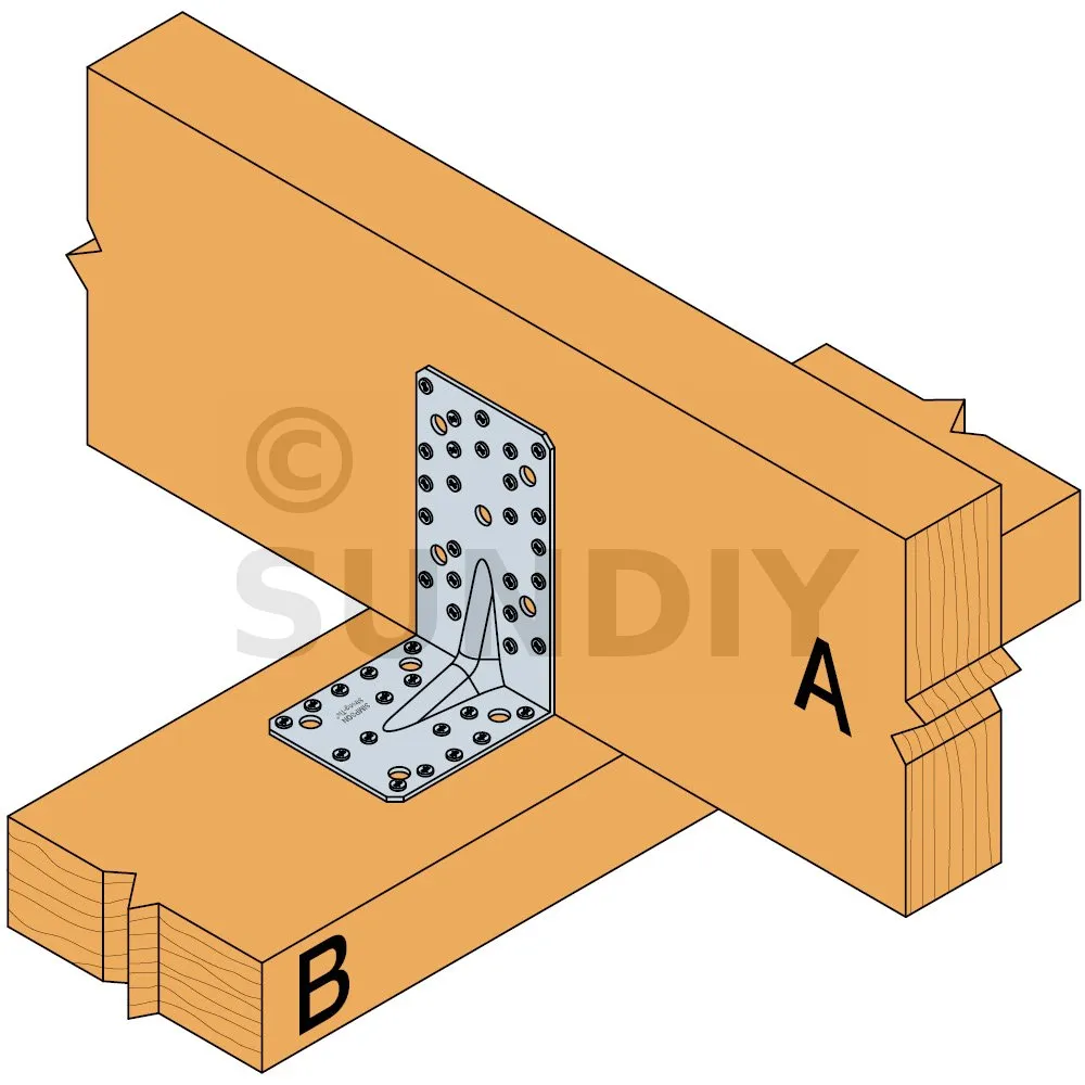 - Fixation poutre bois sur poteau bois - Clouage partiel2 équerres Aile A : 13 CNA Ø4.0x35 ou Ø4.0x50 mm ou Aile B : 8 CNA Ø4.0x35 ou Ø4.0x50 mm