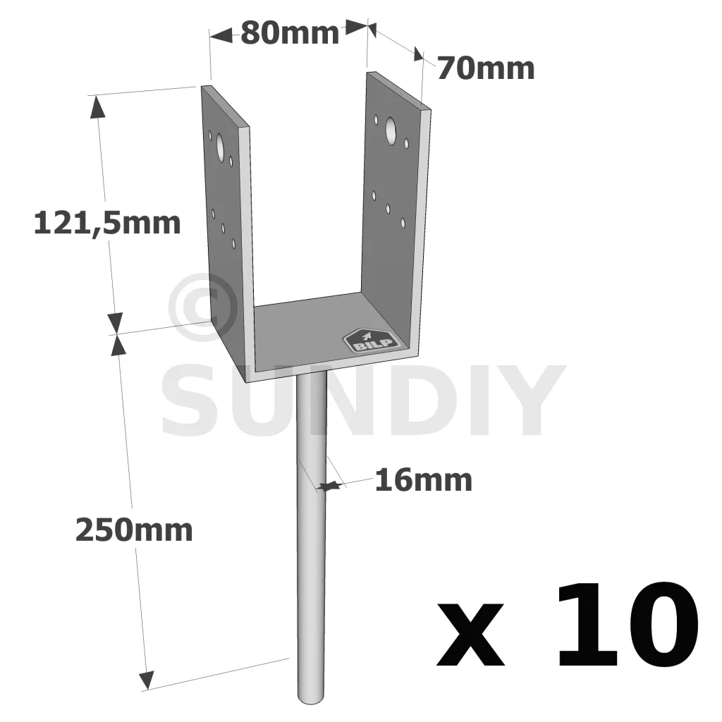 Pieds de poteau en U à sceller - Réf. PPD80/70G_10