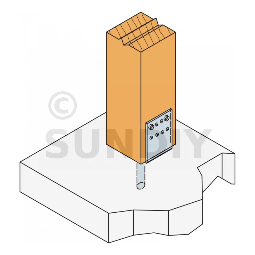 2. Fixer le pied de poteau sur le poteau.