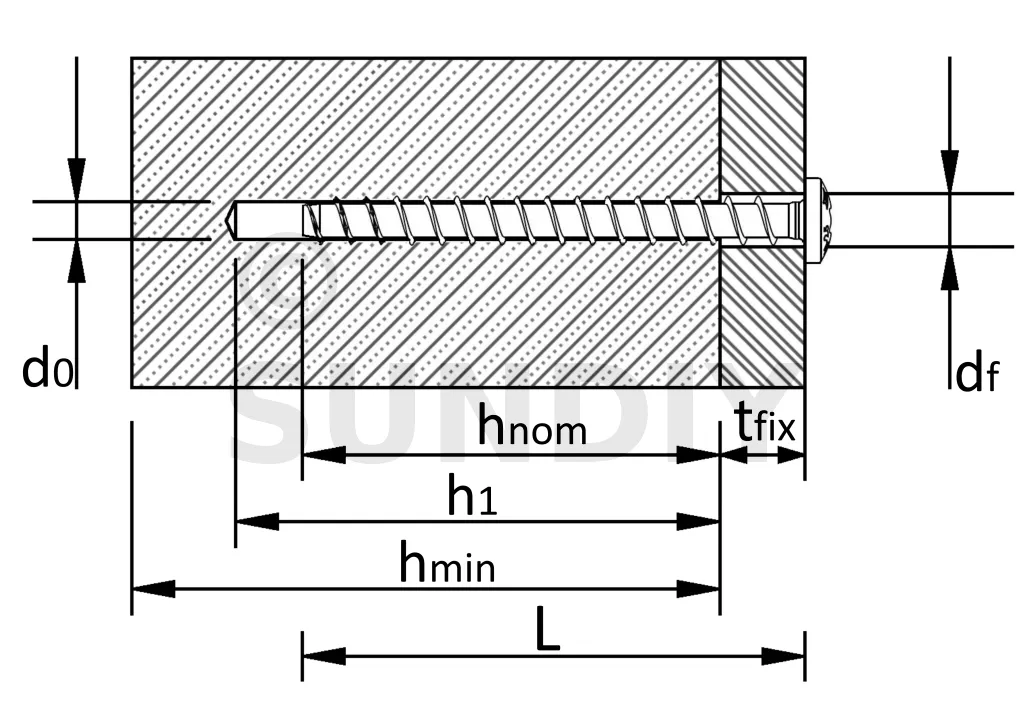 - Cette vis à béton se monte à proximité des bords sans clé dynamométrique et est démontable.