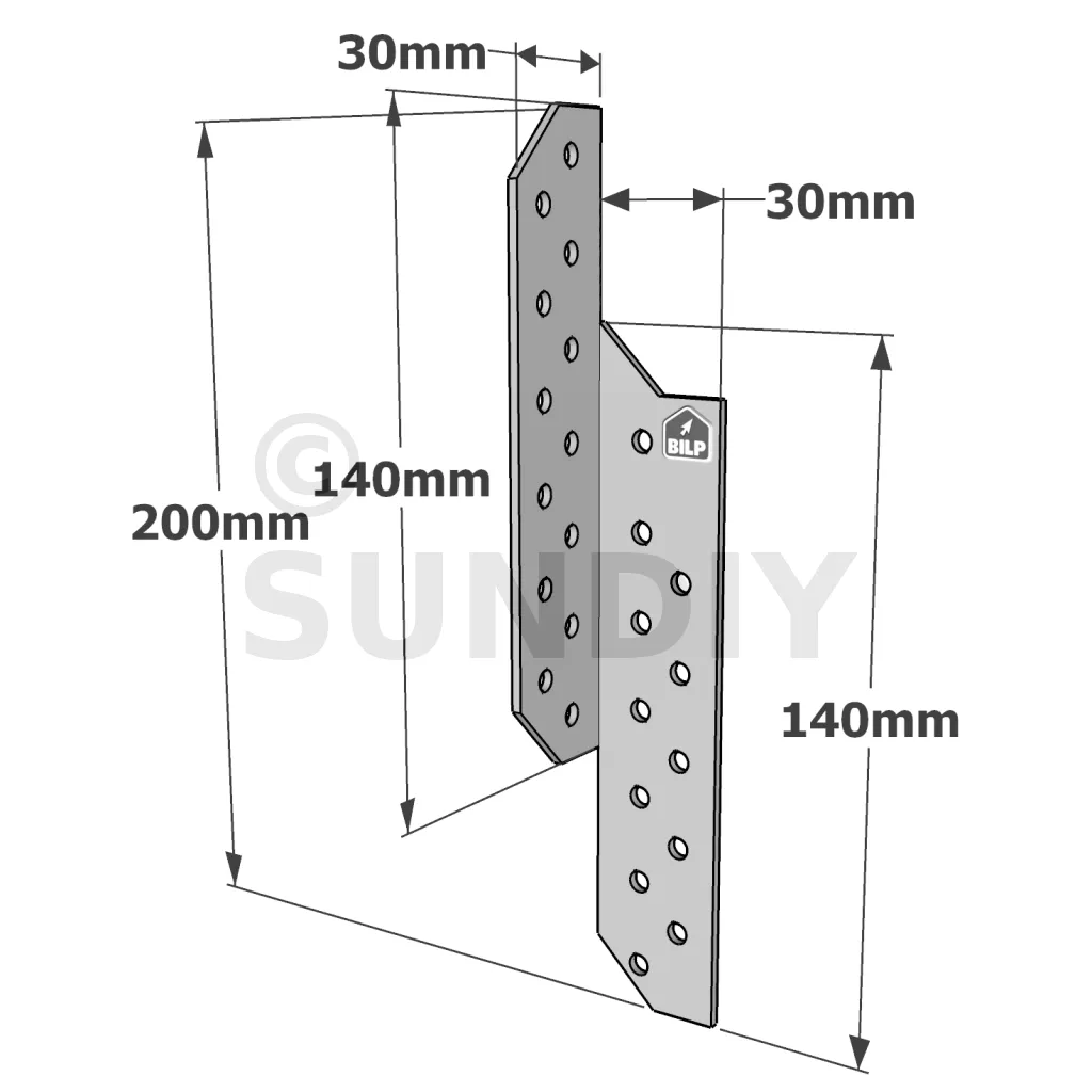 Patte de solivage DROITE - 30x200x1.5mm - Réf. PSD200/30/1.5_10