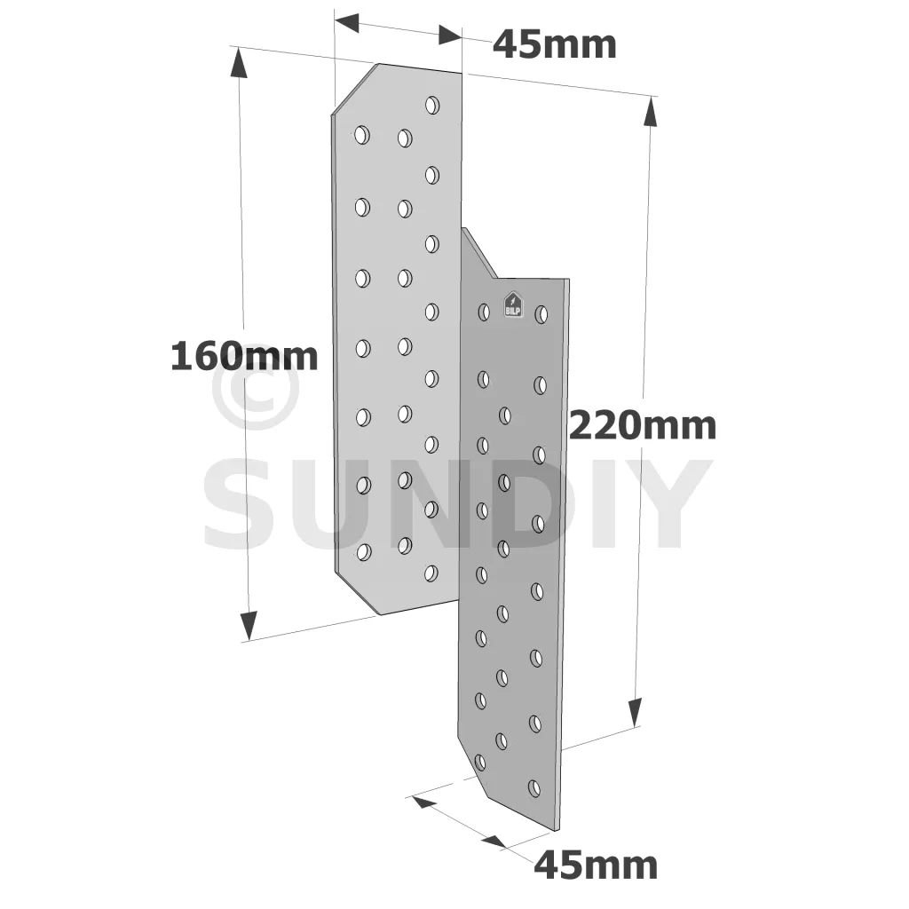 Patte de solivage DROITE - 45x220x2mm - Réf. PSD220/45/2_10