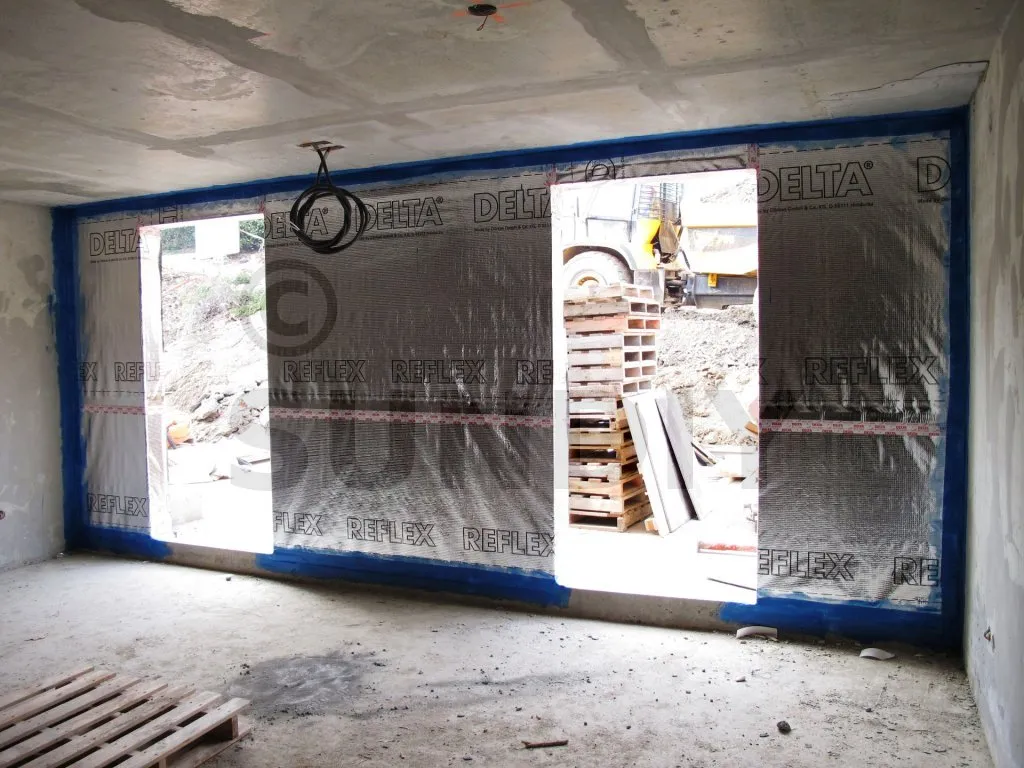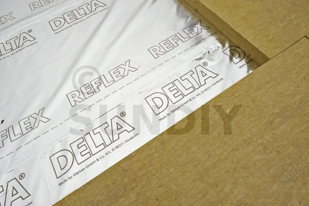 DELTA®-REFLEX est mis en œuvre sur la face chaude de la construction de manière continue en collant les recouvrements entre lés et les différents raccords latéraux ou sorties de conduits de ventilation.