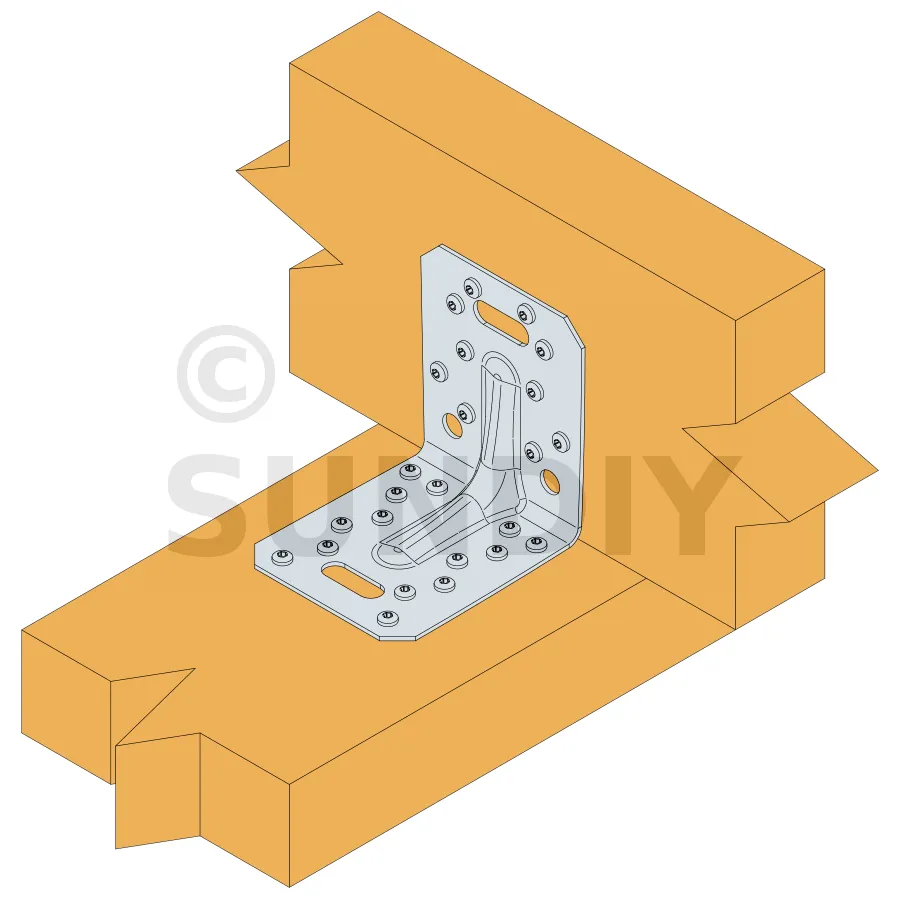 L’équerre renforcée ACRL10520 répond à des applications structurelles dans la charpente et la maison à ossature bois. La présence des trous oblongs sur chaque aile permet un réglage latéral.