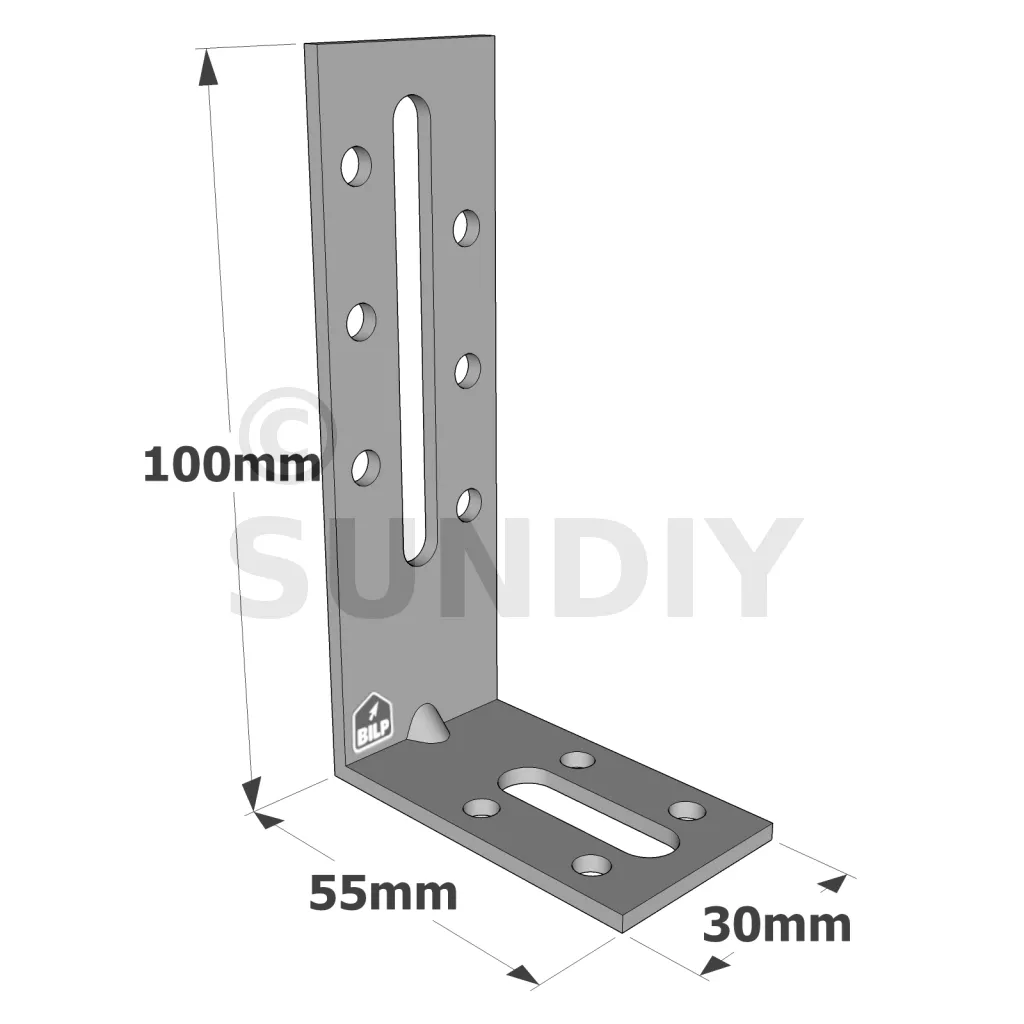 - Trous oblongs facilitant l’ajustement des assemblages,