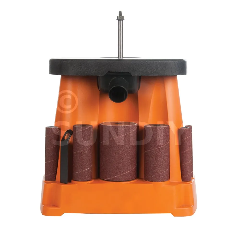 Plateau en fonte de 370 x 295 mm pour un meilleur support et plus de stabilité. Les actions de rotation et d’oscillation procurent une meilleure vitesse et efficacité , pour du travail minutieux et à finition parfaite. Comprend 6 manchons de ponçage grain 80 de 13, 19, 26, 38, 51 et 76 mm de diam. ainsi que les tambours de ponçage et inserts respectifs. Rangement des accessoires intégré. Tubulure d’extraction des poussières pour système d’aspiration.