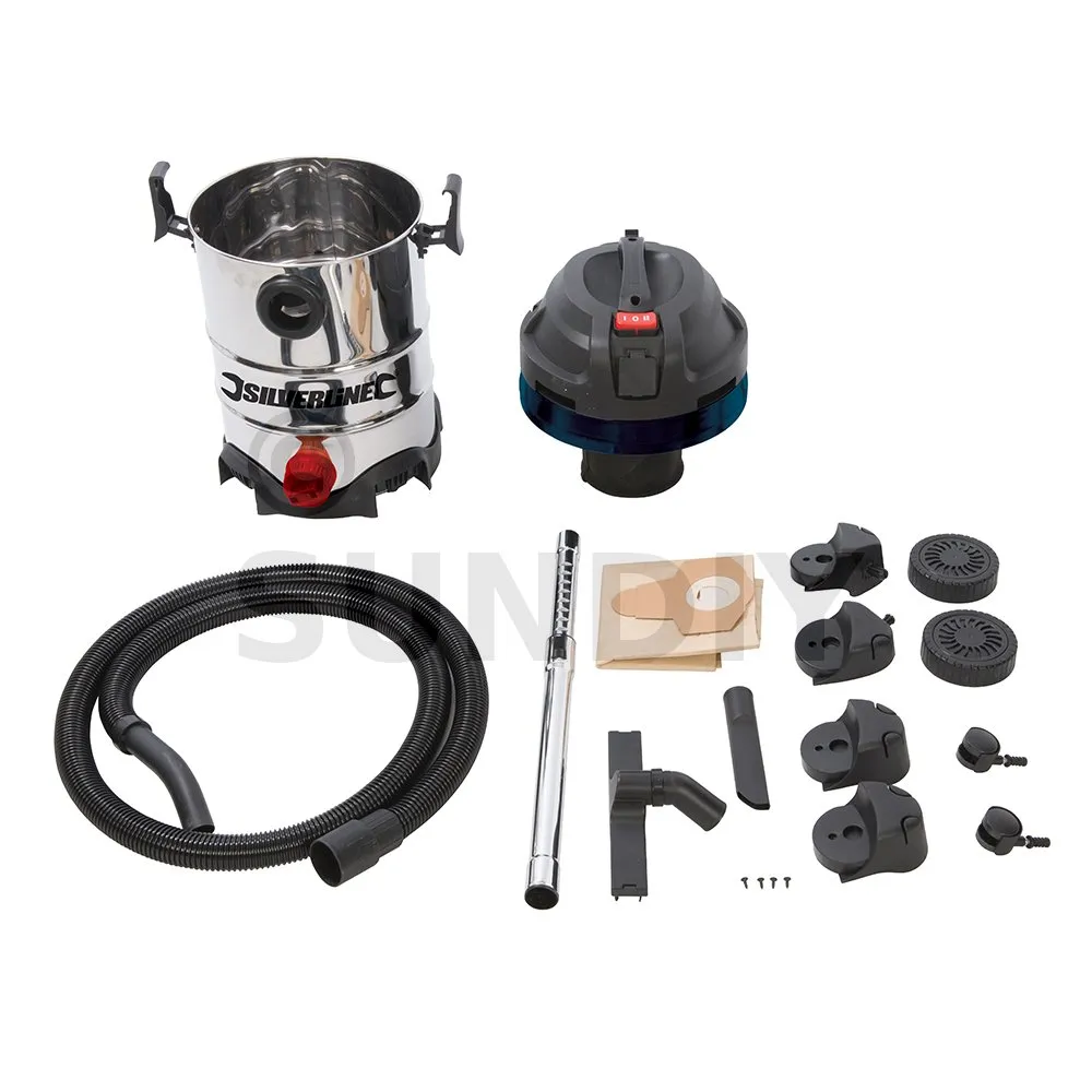 Aspirateur/souffleur puissant avec débit d’air de 58 L/s et une puissance d’aspiration de 18 kPa. Idéal pour l’atelier et pour utilisation générale. Prise de courant GB de 13 A et prise de force avec capacité jusqu’à 2 000 W (9 A). Fonction automatique d’extraction des poussières dès qu’un outil branché dans la prise de force est mis en marche. Réservoir en acier inoxydable d’une capacité de 30 L avec bouchon de vidange. Interrupteur facile à utiliser et cordon d’alimentation de 6 m. Comprend un tuyau de 2,5 m, un tube télescopique en acier inoxydable, un filtre réutilisable, un manchon en mousse, une brosse à sol de 250 mm, un sac à poussières, un suceur et des roulettes.
