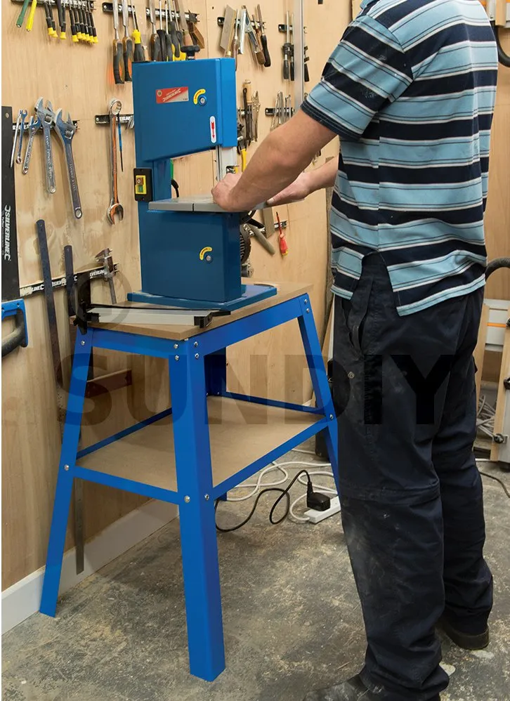 Support universel ajustable pour machine-outil. Châssis en acier robuste, finition époxy, offrant un support stable pour les scies à table, scies à onglets et autres équipements d’atelier. La plate-forme supérieure à 2 éléments à indications angulaires et de longueur est extensible dans la largeur (de 360 à 520 mm). Pieds caoutchoutés pour réduire les vibrations et protéger les surfaces.