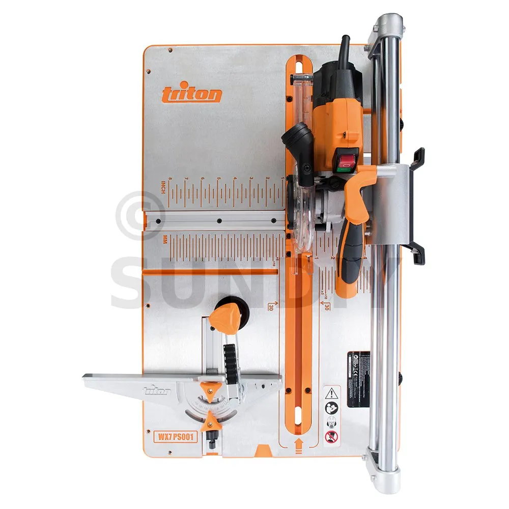 Puissance 910 W, diamètre 127 mm. Utilisable comme module complémentaire au Workcentre TWX7 ou comme outil indépendant sur établi. Embase en fonte d’aluminium avec graduations métriques et impériales. Lame de scie à dents fines permettant d’obtenir un tranchant net et régulier. La scie peut être utilisée en mode stationnaire sur établi ou en mode libre pour réaliser des coupes transversales et d’onglets sur des surfaces plus étendues grâce au rapporteur fourni avec pince à desserrage rapide intégrée. Profondeur de coupe jusqu’à 22 mm. Parfaite pour obtenir des coupes rapides et précises dans différents matériaux dont laminés et parquets, panneaux décoratifs et plinthes. Lame, rapporteur, pince, sac à poussières, clé, bâton-poussoir et éléments pour assemblage avec Workcentre TWX7 fournis.