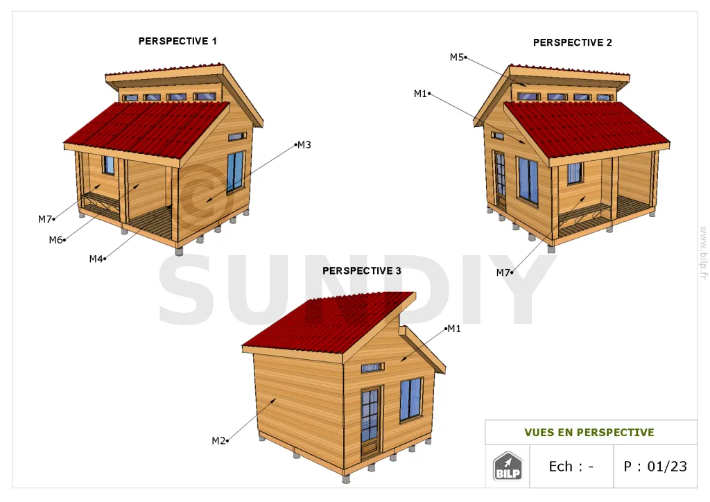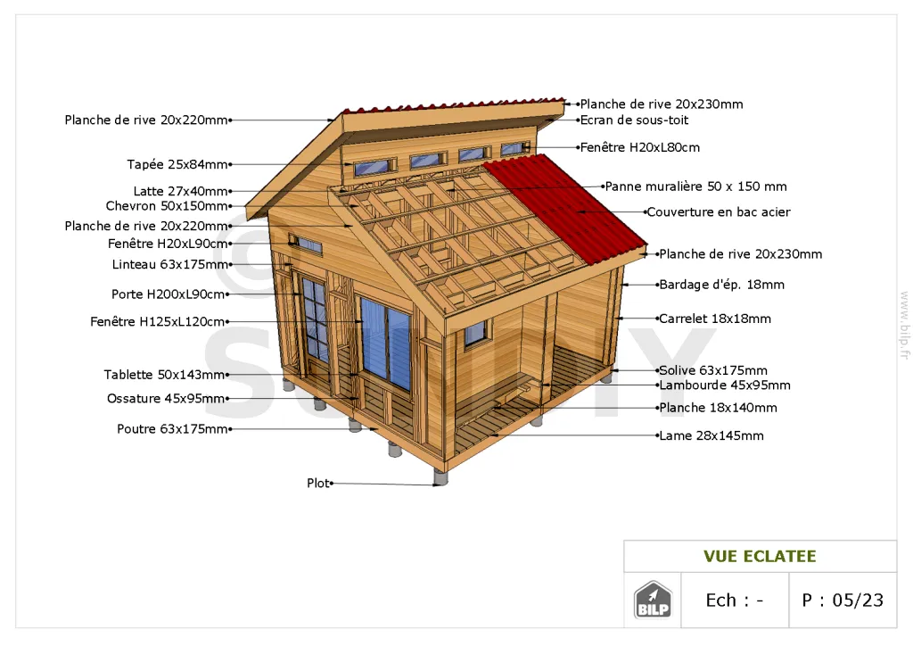 Vous aurez une vue éclatée qui vous permettra de distinguer tous les éléments constituants votre cabane.
